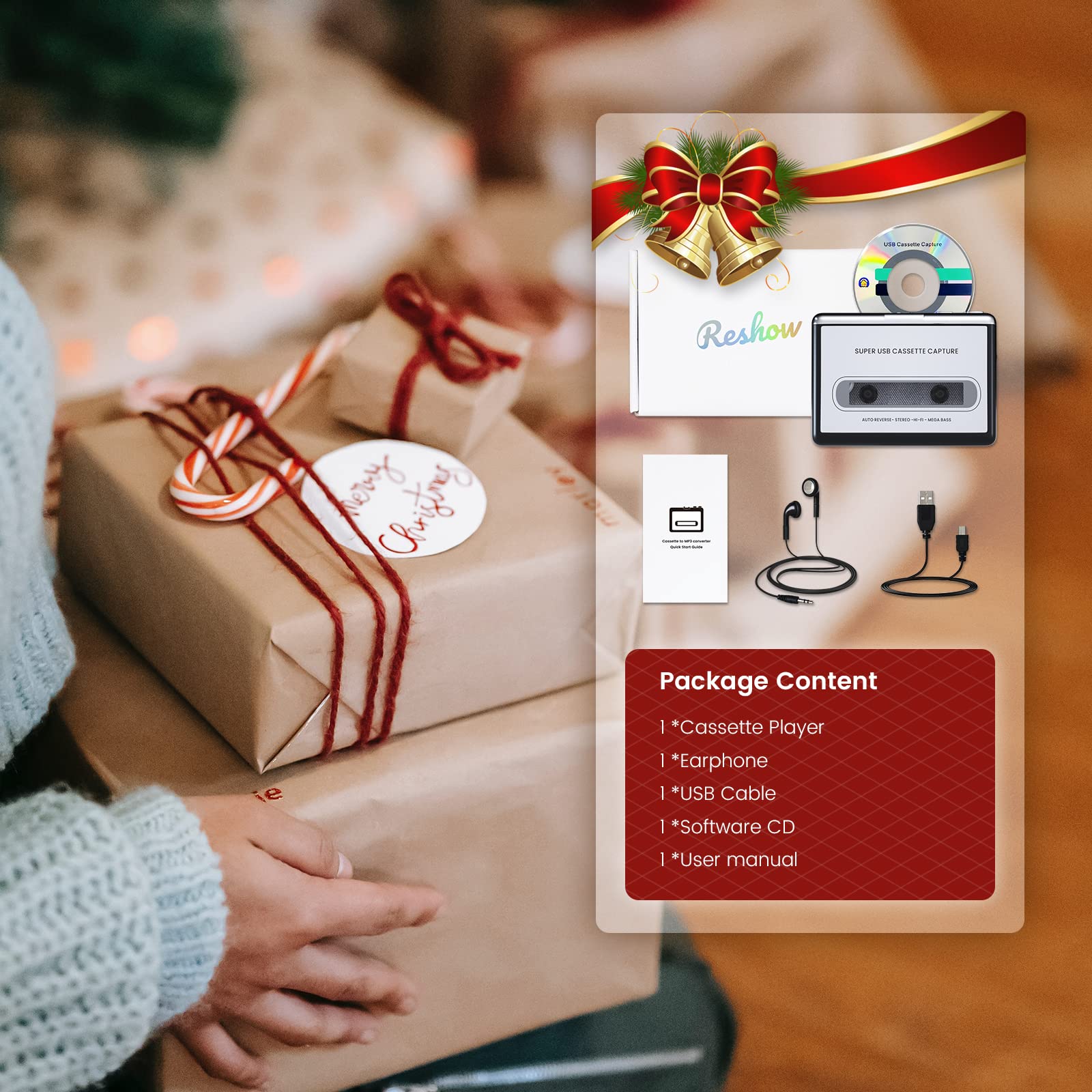 Reshow Walkman Cassette Tape Player – Portable Tape Player Audio Cassette to Digital Converter – Compatible with Laptops and Personal Computers – Convert Cassette Tape Recorder to IPod Format (Silver)